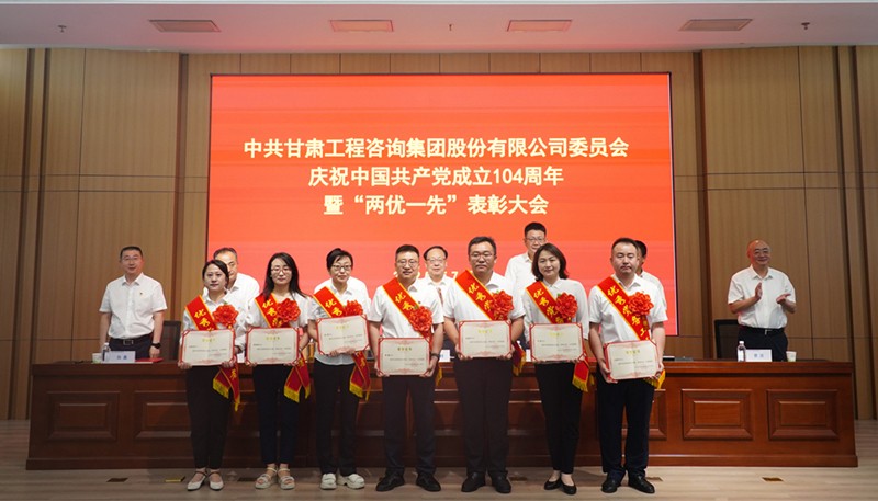 7月1日,甘肅工程咨詢(xún)集團(tuán)召開(kāi)慶祝中國(guó)共產(chǎn)黨成立104周年暨“兩優(yōu)一先”表彰大會(huì),回顧黨的輝煌歷程,弘揚(yáng)偉大建黨精神,全面展示集團(tuán)黨建工作成效和黨員干部昂揚(yáng)風(fēng)貌,激勵(lì)各級(jí)黨組織和全體黨員凝心聚力、擔(dān)當(dāng)作為,奮力推動(dòng)集團(tuán)公司高質(zhì)量發(fā)展邁向新臺(tái)階。集團(tuán)公司黨委書(shū)記、董事長(zhǎng)張佩峰出席并講話,總經(jīng)理、董事陳一夫及在家領(lǐng)導(dǎo)班子成員出席,黨委委員、副總經(jīng)理孟康榮宣讀表彰決定,紀(jì)委書(shū)記、監(jiān)察專(zhuān)員師宗正主持會(huì)議。