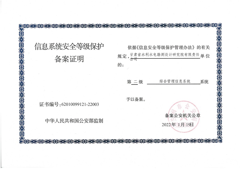自工作開(kāi)展以來(lái),相關(guān)子公司積極貫徹落實(shí)集團(tuán)公司工作舉措,集團(tuán)本部、建筑設(shè)計(jì)院、水電設(shè)計(jì)院、土木工程院、招標(biāo)咨詢集團(tuán)、交通監(jiān)理公司合計(jì)16個(gè)信息系統(tǒng)已順利完成信息系統(tǒng)安全等級(jí)保護(hù)2.0測(cè)評(píng)備案工作,并獲得監(jiān)管部門頒發(fā)的《信息系統(tǒng)安全等級(jí)保護(hù)備案證明》。通過(guò)此次等級(jí)保護(hù)2.0測(cè)評(píng)工作,集團(tuán)公司網(wǎng)絡(luò)和重要的信息數(shù)據(jù)系統(tǒng)的安全防護(hù)和保障能力得到進(jìn)一步提升,為推動(dòng)集團(tuán)公司數(shù)字化轉(zhuǎn)型工作打下堅(jiān)實(shí)的基礎(chǔ)。