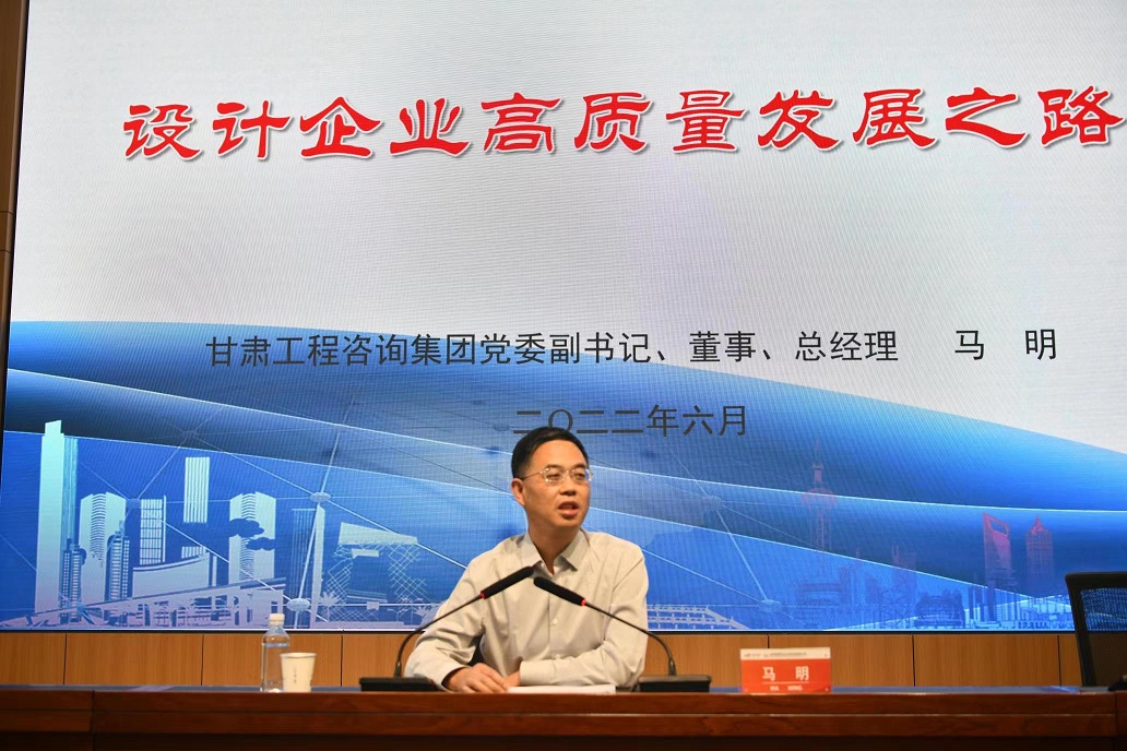 6月9日,在甘肅省建筑設(shè)計研究院有限公司喜迎建院70周年華誕之際,集團公司黨委副書記、總經(jīng)理馬明受邀以《設(shè)計企業(yè)高質(zhì)量發(fā)展之路》為題作專題講座。集團公司經(jīng)理層成員、各部門主要負責人及兄弟單位主要領(lǐng)導(dǎo),建筑設(shè)計院領(lǐng)導(dǎo)班子成員、全體中層干部聆聽講座。