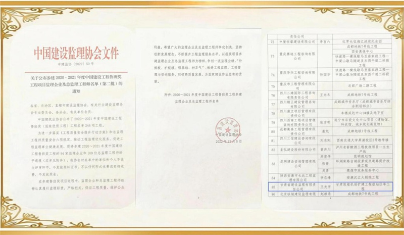項(xiàng)目榮獲中國(guó)建設(shè)工程魯班獎(jiǎng),項(xiàng)目總監(jiān)理工程師榮獲“先進(jìn)個(gè)人”榮譽(yù)稱號(hào)