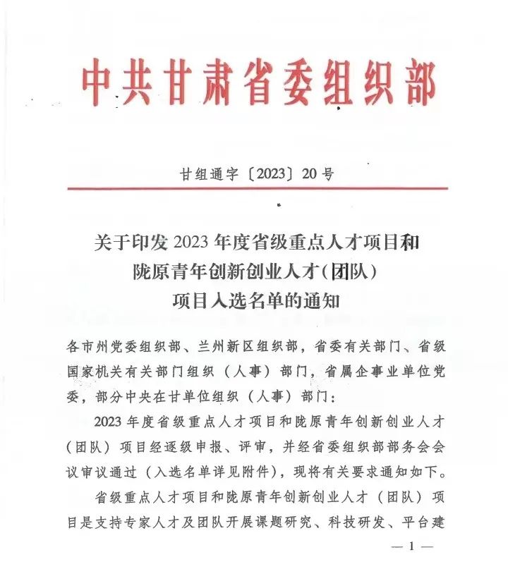 近期,省委組織部印發(fā)了《關于印發(fā)2023年度省級重點人才項目和隴原青年創(chuàng)新創(chuàng)業(yè)人才(團隊)項目入選名單的通知》(甘組通字〔2023〕20號),甘肅工程咨詢集團省建筑設計院張雅慧申報的《鄉(xiāng)村振興與社會生態(tài)韌性視角下西北傳統(tǒng)村落的保護與再生利用研究》入選個人項目名單,獲得6萬元經(jīng)費資助。