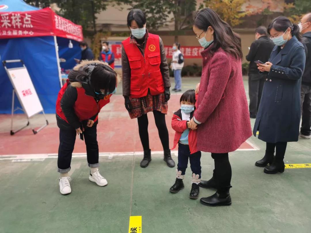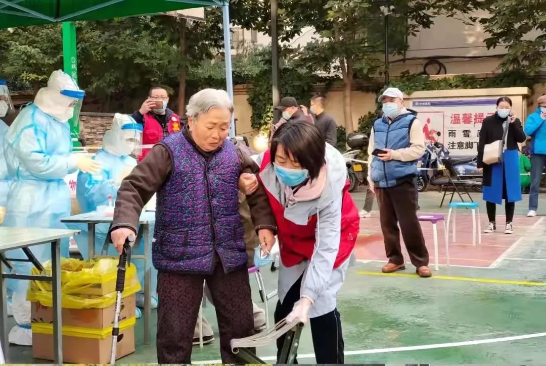 號令一出,不到半個小時時間,300多人的志愿隊伍已組建就緒。當(dāng)天下午,第一批志愿者隊伍,統(tǒng)一身穿紅馬甲,佩戴口罩,迅速奔赴南關(guān)夜市、伊真大廈、五泉街道、外國語中學(xué)等多個檢測點開展志愿服務(wù)。而女志愿服務(wù)者則更成為了深秋季節(jié)疫情防控一線最靚麗的一道風(fēng)景?!澳茫?zhí)嵩绱蜷_微信健康出行碼”“請大家不要扎堆聚集,按照1米線要求,有序排隊”“請黃碼人員、老人、孕婦和小孩走綠色通道”……一聲聲溫馨提示,一次次貼心攙扶,都是她們最溫情的守護(hù)。