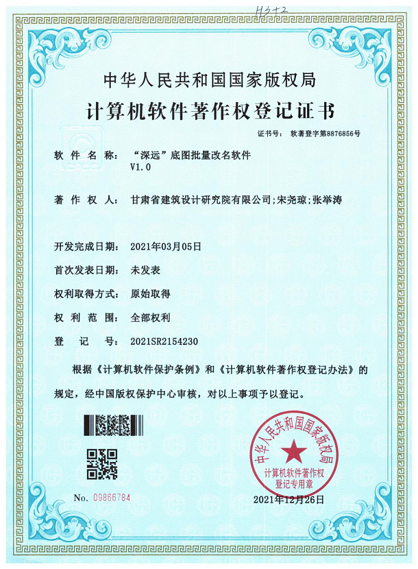 12月26日,從國家版權(quán)局傳來好消息,建筑設(shè)計院原創(chuàng)研發(fā)的“‘深遠’底圖后處理系統(tǒng)”和“‘深遠’底圖批量改名軟件”獲國家版權(quán)局頒發(fā)的計算機軟件著作權(quán)登記證書。這標(biāo)志著建筑設(shè)計院智能化數(shù)字化建設(shè)工作取得了實質(zhì)進展和成效,向智能化數(shù)字化邁出了關(guān)鍵一步。