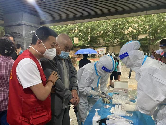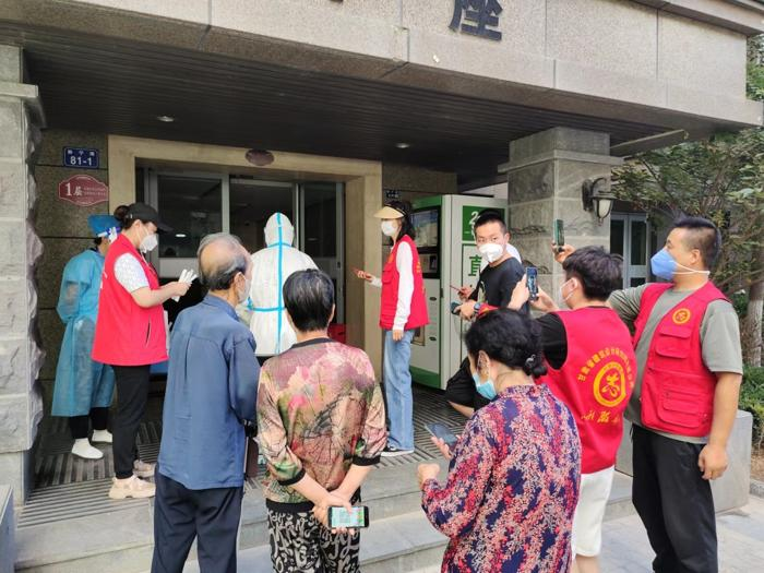 盛元小區(qū)一共有5個(gè)單元,500多戶,2000多人;新港城小區(qū)屬于城關(guān)區(qū)比較大的居民小區(qū),分為ABCDE五個(gè)區(qū),共有300多個(gè)單元,5200多戶,16000多人居住。面對(duì)這些情況,陳萬國、李朋袀和白萬景等志愿者沖在前面,維持檢測(cè)秩序,布置核酸檢測(cè)點(diǎn)位,分發(fā)甘肅抗疫中藥包,投放樓棟垃圾,匯總登記問題并與社區(qū)和醫(yī)務(wù)人員溝通逐一解決。接受核酸檢測(cè)的隊(duì)伍中,有上至八九十歲的老人,下至三四歲的孩童,還有行動(dòng)不便的病人,他們總是無微不至,耐心引導(dǎo),尤其在遇到一些行動(dòng)不便的老人和病人時(shí),他們主動(dòng)上前攙扶,把貼心的溫暖送給每一名群眾。