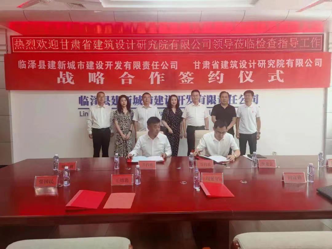近日,臨澤縣建新城市建設(shè)開發(fā)有限責任公司與甘肅省建筑設(shè)計研究院有限公司舉行戰(zhàn)略合作協(xié)議簽約儀式。臨澤縣副縣長周延年、住建局副局長王增鑫、臨澤縣建新公司黨支部書記田富勤,建筑設(shè)計院黨委書記李向軍,總經(jīng)理助理、設(shè)計二院院長樊建倉出席簽約儀式。