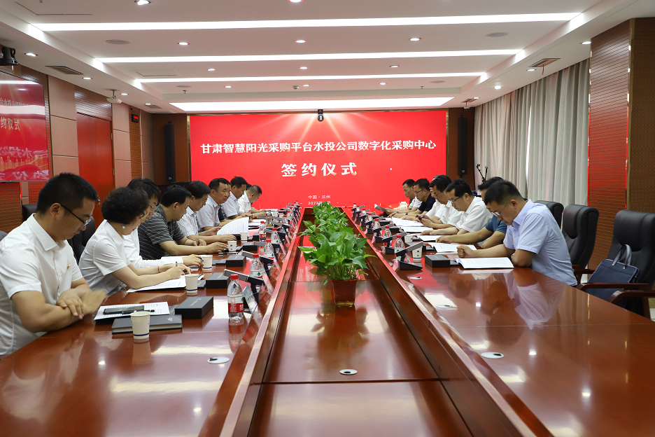 7月6日下午,甘肅省招標(biāo)咨詢集團有限責(zé)任公司與甘肅省水務(wù)投資有限責(zé)任公司舉行甘肅智慧陽光采購平臺水投公司數(shù)字化采購中心簽約儀式。甘肅水務(wù)集團黨委書記、董事長徐崇鋒,招標(biāo)咨詢集團黨委書記、董事長牛茺出席簽約儀式并致辭。甘肅水務(wù)集團黨委副書記、董事、總經(jīng)理汪棟與招標(biāo)咨詢集團黨委副書記、總經(jīng)理孫有仙代表雙方簽約。甘肅水務(wù)集團黨委委員、副總經(jīng)理王玉和,招標(biāo)咨詢集團黨委副書記、監(jiān)事會主席、工會主席巨有成,黨委委員、紀(jì)委書記鄭志峰,黨委委員、副總經(jīng)理李蘭軍,甘肅水務(wù)集團及招標(biāo)咨詢集團相關(guān)部門負(fù)責(zé)人參加簽約儀式。