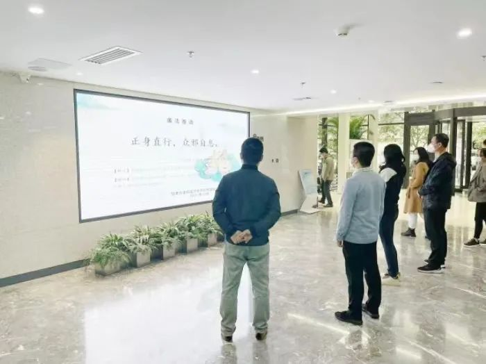 文化的作用如春風(fēng)化雨,潤(rùn)物無(wú)聲,內(nèi)化于心,外踐于行。近日,省建筑設(shè)計(jì)院一樓宣傳大屏播放的“正身直行,眾邪自息”的廉潔寄語(yǔ),吸引了多名干部職工駐足觀看。