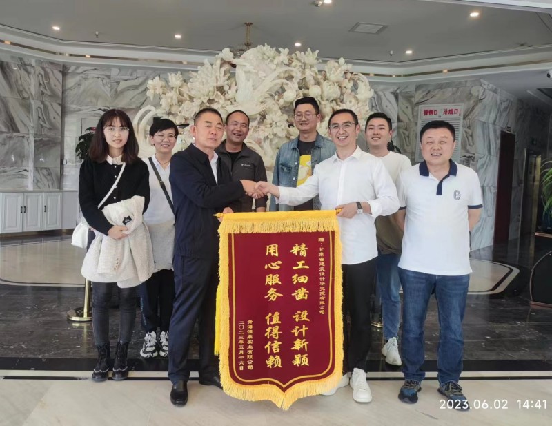 6月2日,青海恒鼎實(shí)業(yè)有限公司董事長馬喜軍將一面繡著“精工細(xì)鑿、設(shè)計(jì)新穎、用心服務(wù)、值得信賴”的錦旗送到省建筑設(shè)計(jì)院青海分院,對其恒鼎金城項(xiàng)目中省建筑設(shè)計(jì)院提供的優(yōu)質(zhì)設(shè)計(jì)方案和高超技術(shù)質(zhì)量表示感謝,這也是省建筑設(shè)計(jì)院近期連續(xù)收到的第二面錦旗。
