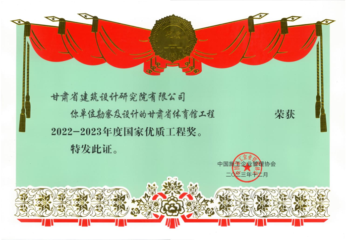 近日,從中國施工企業(yè)管理協(xié)會傳來好消息,由甘肅省工程勘察設(shè)計大師、省建筑設(shè)計院總建筑師馮志濤帶領(lǐng)團隊設(shè)計的甘肅省體育館榮獲“2022-2023年度國家優(yōu)質(zhì)工程獎”榮譽稱號。